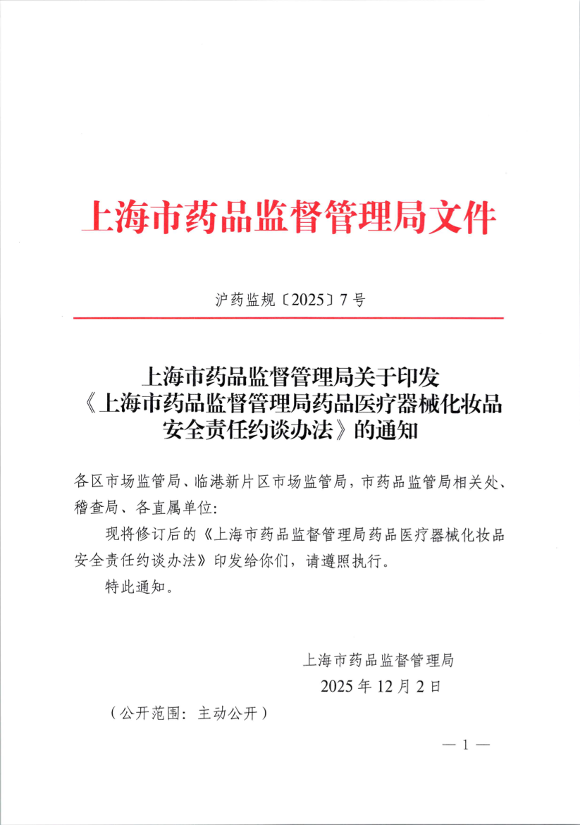 (有效期至2030年12月1日)918博天堂关于印发《918博天堂药品医疗器械化妆品安全责任约谈办法》的通知