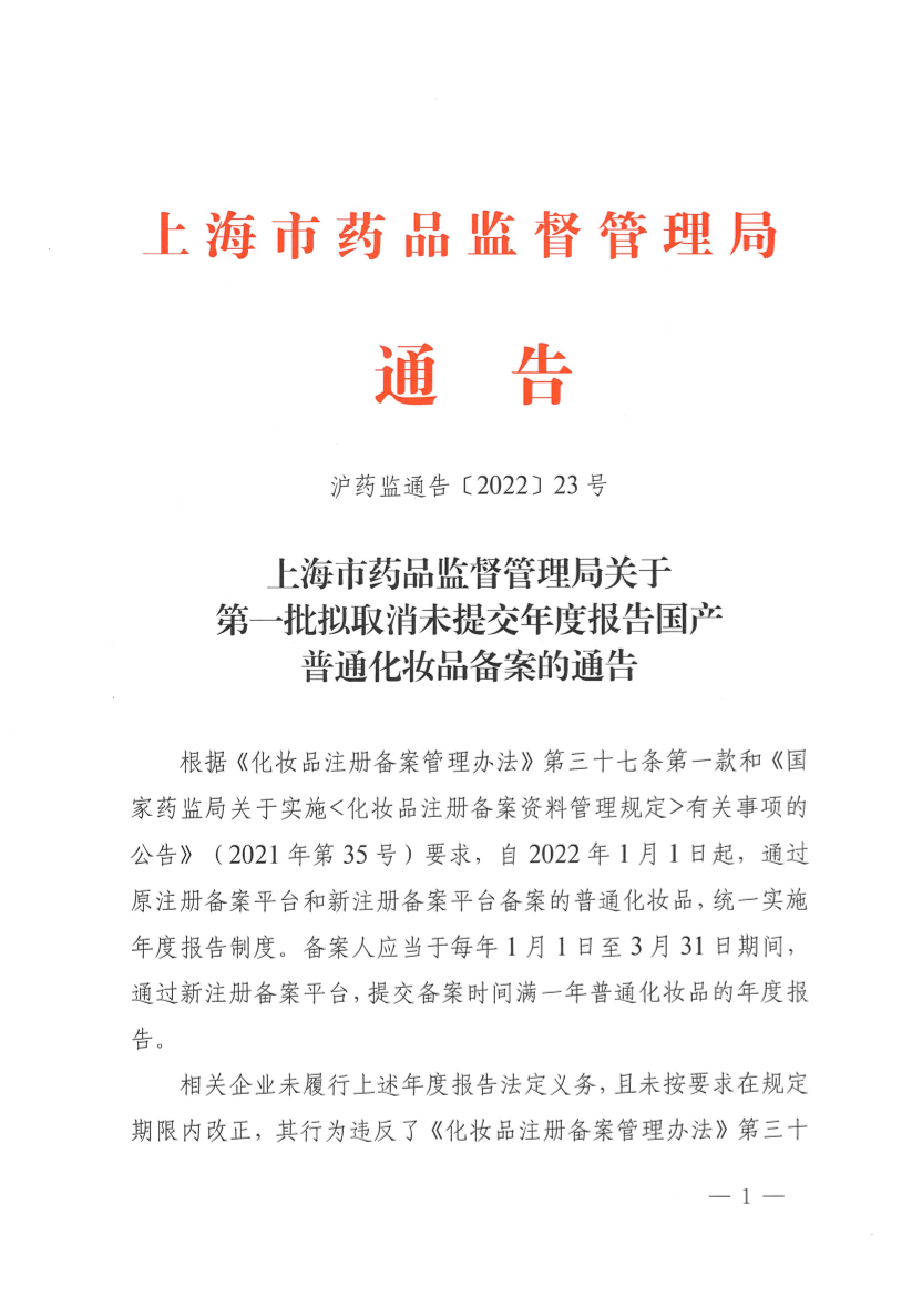 1.拟取消未提交年度报告国产普通化妆品备案产品清单(第一批)