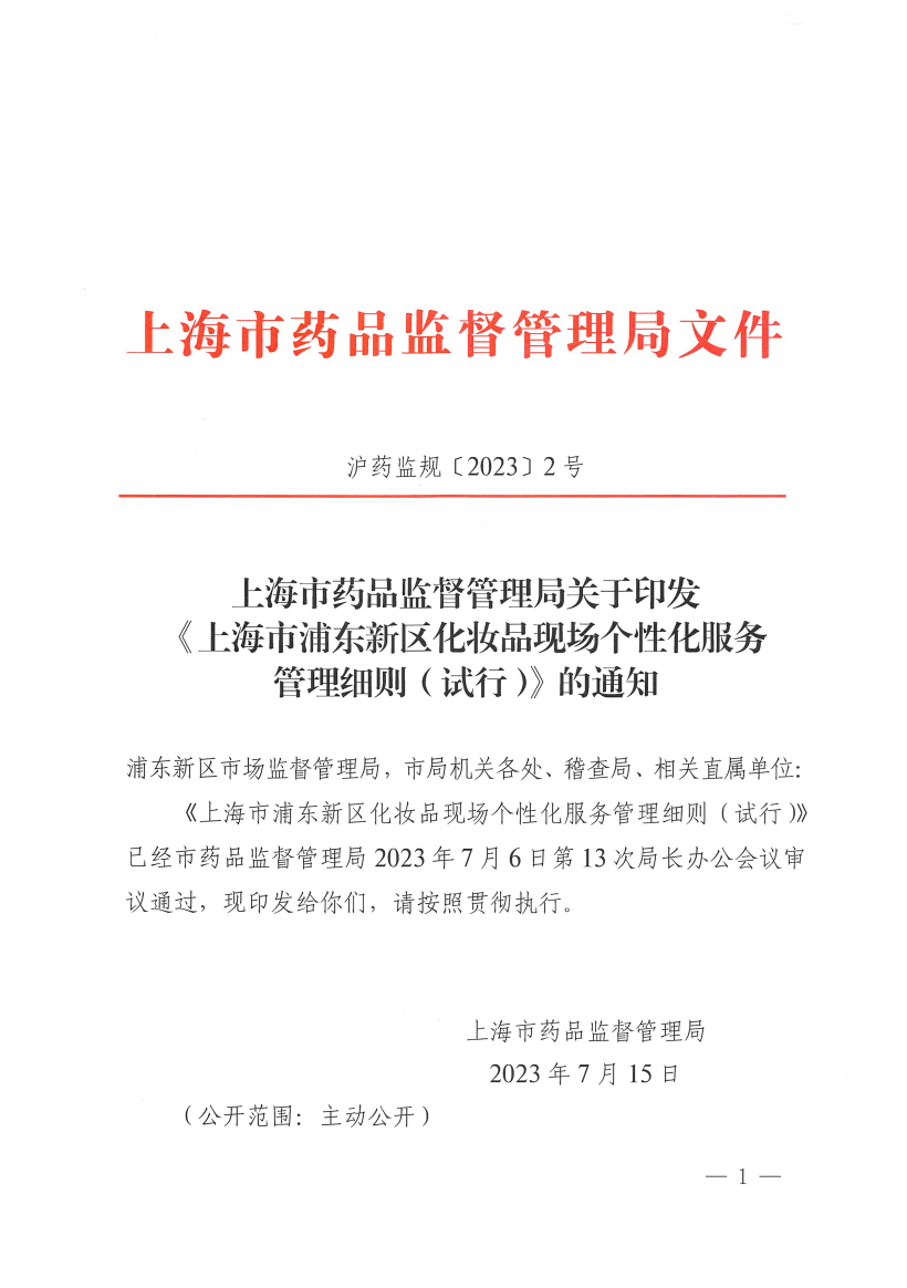 (有效期至2025年8月19日)918博天堂关于印发《上海市浦东新区化妆品现场个性化服务管理细则(试行)》的通知