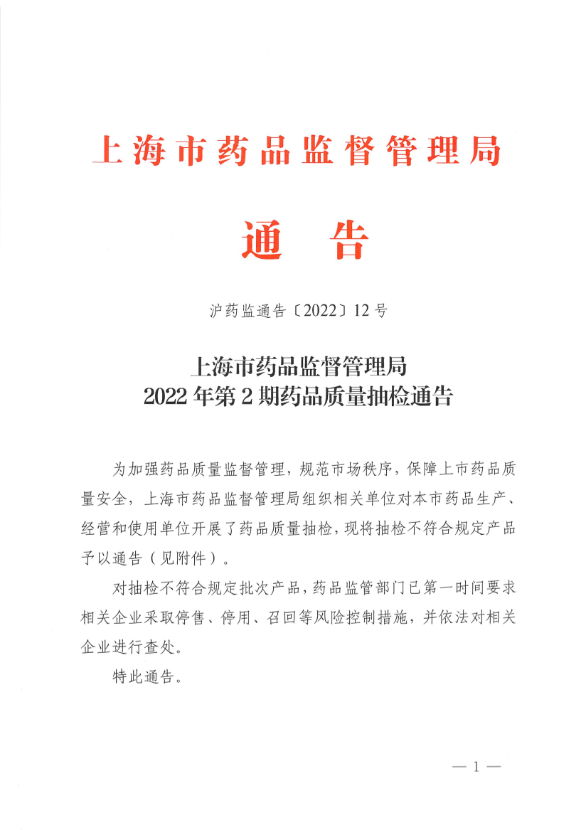为加强药品质量监督管理,规范市场秩序,保障上市药品质量安全,918博天堂组织相关单位对本市药品生产、经营和使用单位开展了药品质量抽检,现将抽检不符合规定产品予以通告(见附表)。