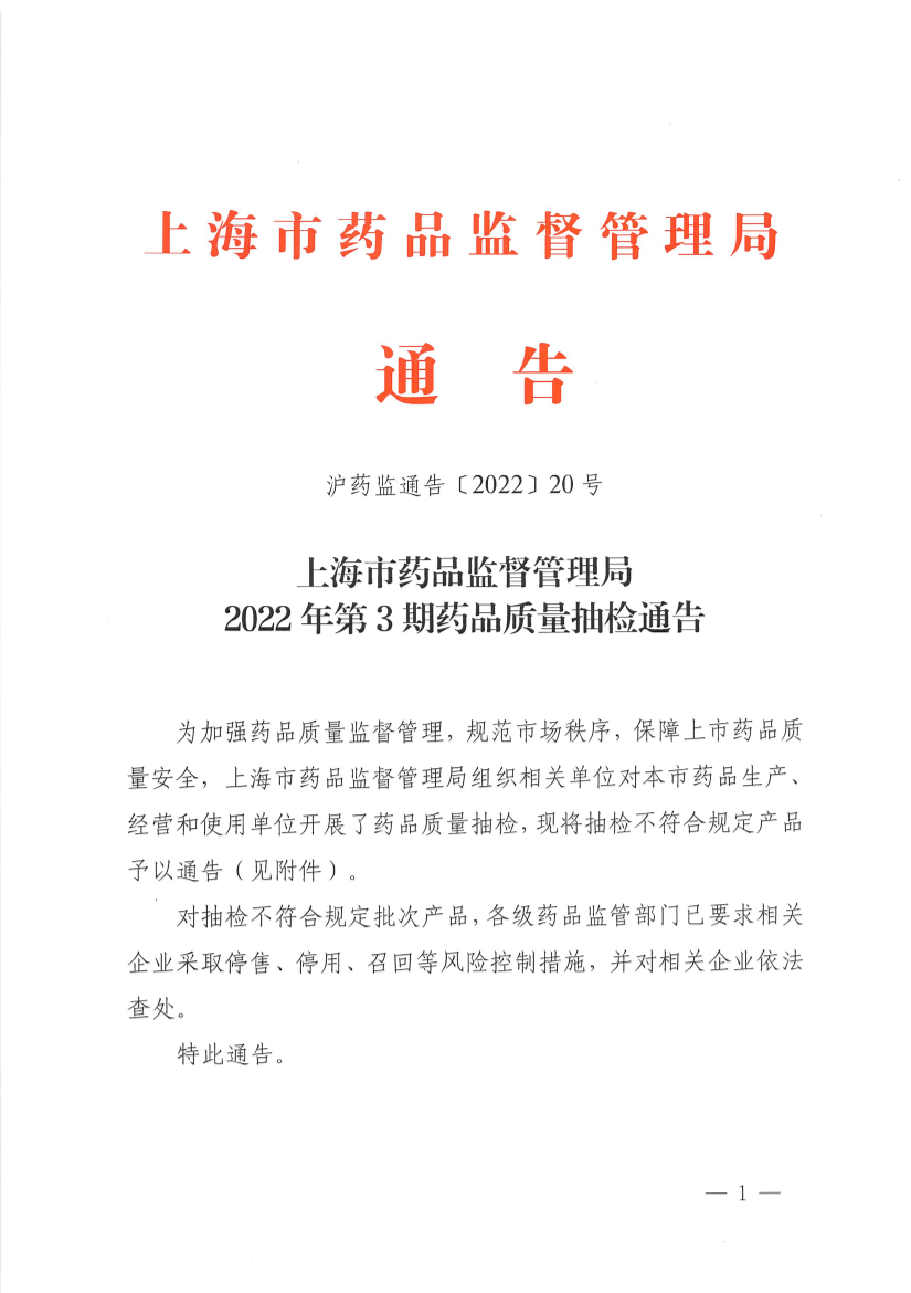 为加强药品质量监督管理,规范市场秩序,保障上市药品质量安全,918博天堂组织相关单位对本市药品生产、经营和使用单位开展了药品质量抽检,现将抽检不符合规定产品予以通告(见附件)。