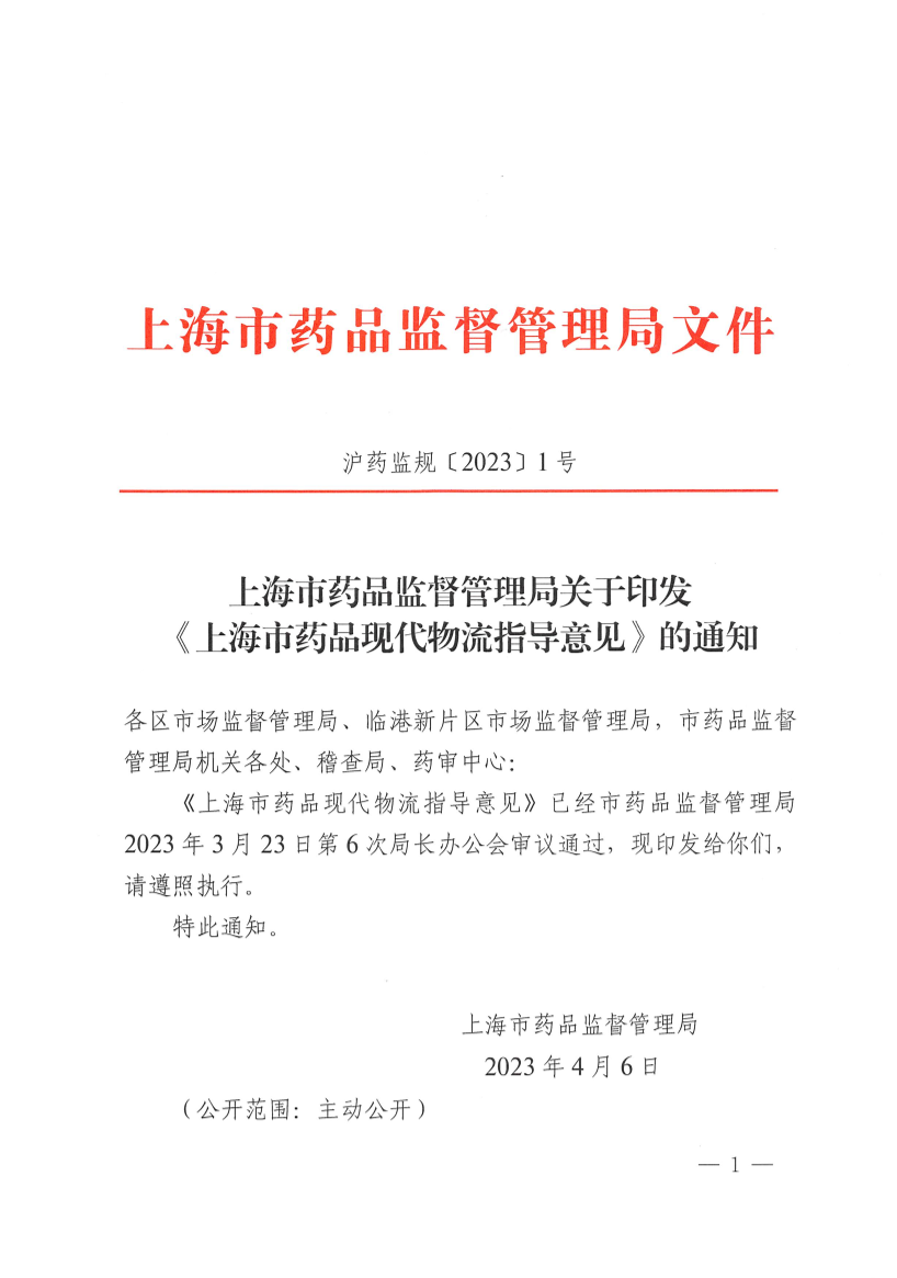 (有效期至2028年4月5日)918博天堂关于印发《上海市药品现代物流指导意见》的通知