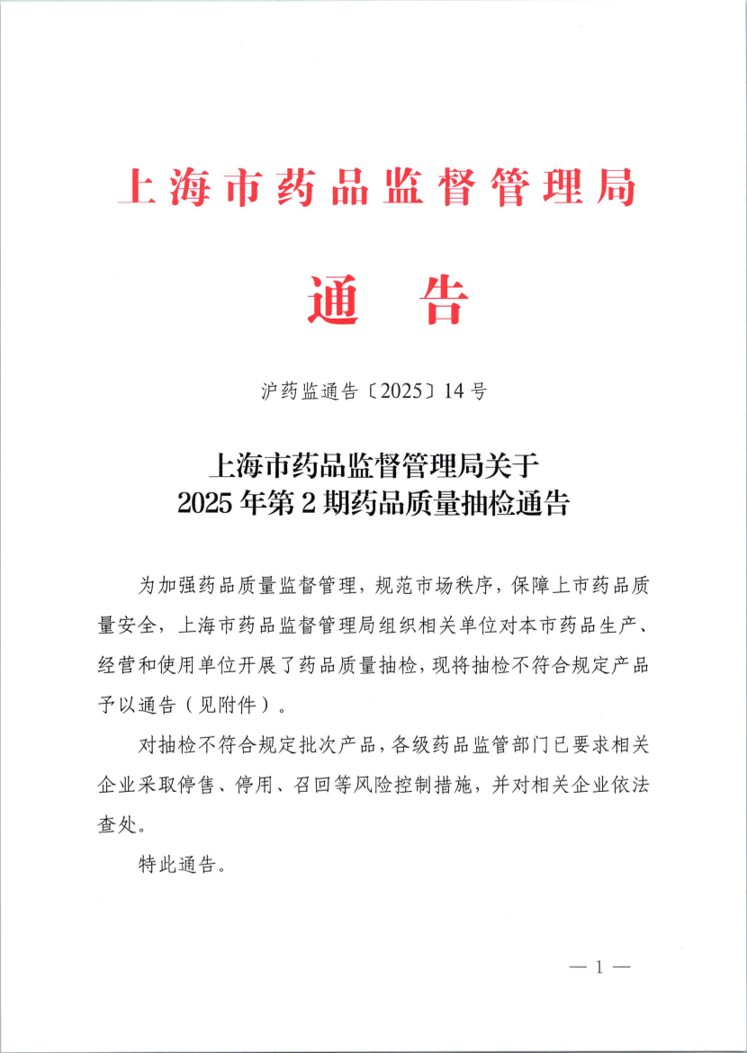 沪药监通告〔2025〕14号